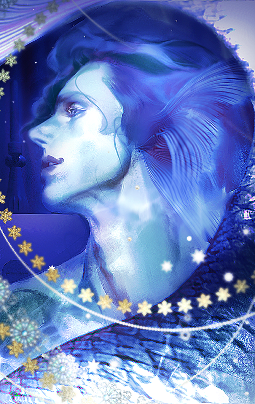 Latil frunció el ceño, pero Meradim se estaba riendo entre dientes y, así las cosas, se levantó un poco, echó los brazos sobre la bañera y agitó suavemente su cola de sirena.
